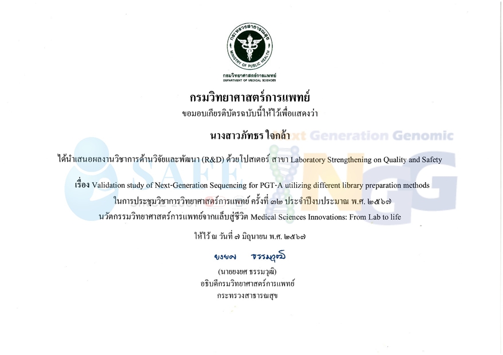 นักวิทยาศาสตร์ NGG เข้าร่วมประชุมและเผยแพร่ผลงาน ในงานการประชุมวิชาการวิทยาศาสตร์การแพทย์ ครั้งที่ 32 ประจำปีงบประมาณ พ.ศ.2567 ระหว่างวันที่ 5-7 มิ.ย.67 ณ ศูนย์การประชุมอิมแพ็คฟอรั่ม เมืองทองธานี (จัดโดย กรมวิทยาศาสตร์การแพทย์ ร่วมกับมูลนิธิกรมวิทยาศาสตร์การแพทย์)
