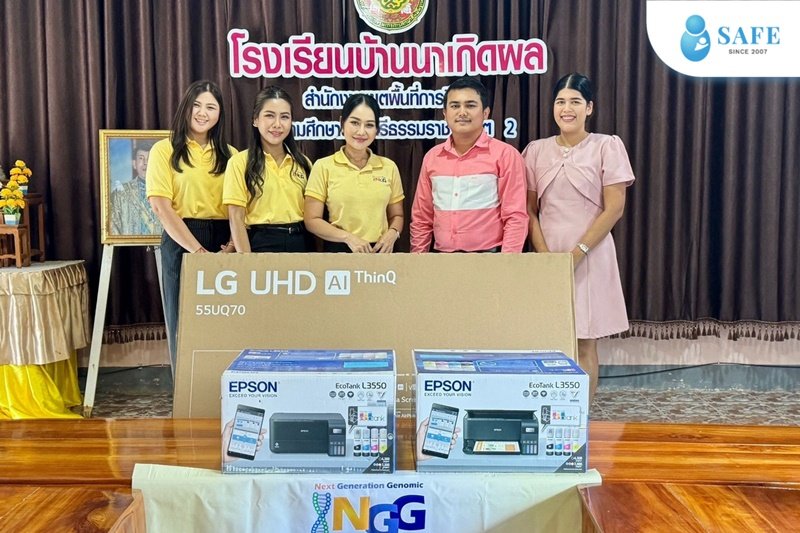 29 สิงหาคม 2568 บริษัท เน็กซ์ เจนเนอเรชั่น จีโนมิกส์ (NGG Thailand) บริษัทในเครือ เซฟ เฟอร์ทิลิตี้ กรุ๊ป จํากัด (มหาชน) (SAFE Fertility Group PCL) เดินหน้าสานต่อกิจกรรมเพื่อสังคม ภายใต้โครงการ “1 การใช้ เท่ากับ 1 การให้” โดยครั้งนี้ NGG ขอเป็นตัวแทนคุณแม่ครอบครัว Qualifi และ Clarifi นำรายได้ส่วนหนึ่งจากการใช้บริการตรวจสุขภาพทารกในครรภ์ด้วยวิธี NIPT (Non-Invasive Prenatal Testing) ได้แก่ Clarifi, Qualifi และ Qualifi Premium 24 มามอบเป็น โทรทัศน์ LED ขนาด 55 นิ้ว จำนวน 1 เครื่อง และเครื่องพิมพ์ (Printer) จำนวน 2 เครื่อง ให้แก่ โรงเรียนบ้านนาเกิดผล จังหวัดนครศรีธรรมราช