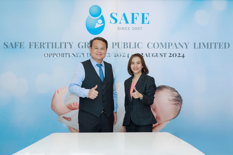 นพ.วิวัฒน์ กว้างคณานุรักษ์ (ซ้าย) ประธานเจ้าหน้าที่บริหาร, คุณชนิดา พัธโนทัย (ขวา) ประธานเจ้าหน้าที่ฝ่ายบัญชีและการเงิน บริษัท เซฟ เฟอร์ทิลิตี้ กรุ๊ป จำกัด (มหาชน) (SAFE) นำเสนอข้อมูลในงานบริษัทจดทะเบียนพบผู้ลงทุน (Opportunity Day) ผ่านระบบ VDO Conference ซึ่งจัดโดย ตลาดหลักทรัพย์แห่งประเทศไทย โดยเปิดเผยว่าช่วงครึ่งแรกปี 2567 มีกำไรส่วนของบริษัทใหญ่ 113.5 ล้านบาท เพิ่มขึ้น 25.2 ล้านบาท หรือ 28.5% สำหรับการนำเทคโนโลยี PGTSeqA มาใช้จะเป็นเครื่องมือในการตรวจและคัดกรองโครโมโซมตัวอ่อนได้แม่นยำ ช่วยเพิ่มอัตราความสำเร็จในการตั้งครรภ์ให้สูงขึ้น ซึ่งจะช่วยดึงดูดกลุ่มลูกค้าทั้งในประเทศและต่างประเทศให้มาใช้บริการเพิ่มขึ้นอย่างต่อเนื่อง และประเมินว่าเทคโนโลยีนี้ จะช่วยสร้างการเติบโตและรายได้ที่สูงขึ้น ซึ่งงานดังกล่าวจัดขึ้น ณ ห้องประชุมใหญ่ SAFE Fertility Group เมื่อวันพฤหัสบดีที่ 22 สิงหาคม 2567 ที่ผ่านมา